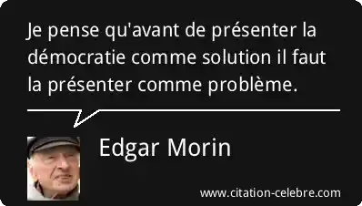 Citation Edgar Morin probleme : Je pense qu'avant de présenter la démocratie comme solution il...