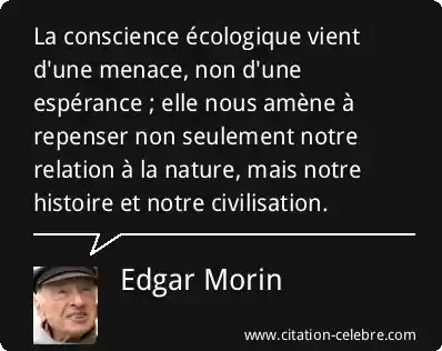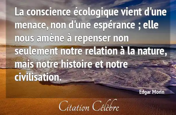 La conscience écologique vient d'une menace, non d'une espérance ; elle nous amène à repenser non seulement notre relation à la nature, mais notre histoire et notre civilisation.