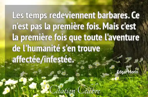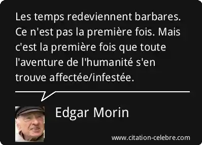 Les temps redeviennent barbares. Ce n'est pas la première fois. Mais c'est la première fois que toute l'aventure de l'humanité s'en trouve affectée/infestée.