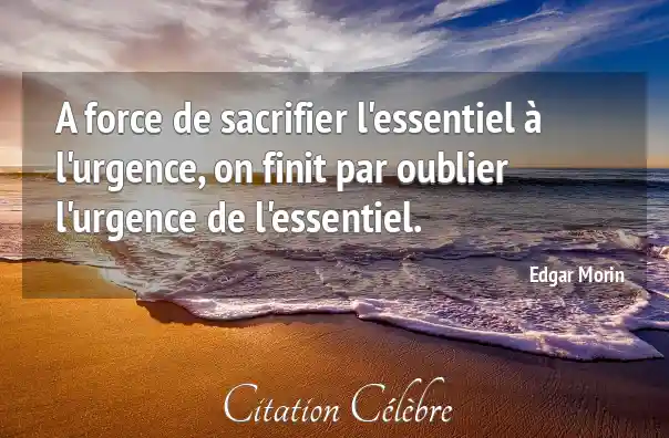 Citation Edgar Morin oublier : A force de sacrifier l'essentiel à l'urgence, on finit par...