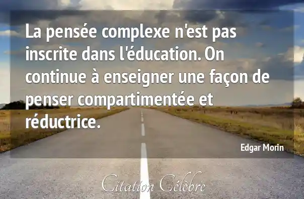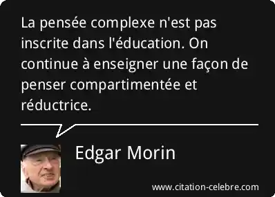 La pensée complexe n'est pas inscrite dans l'éducation. On continue à enseigner une façon de penser compartimentée et réductrice.