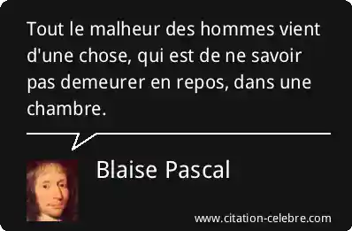 Tout le malheur des hommes vient d'une chose, qui est de ne savoir pas demeurer en repos, dans une chambre.