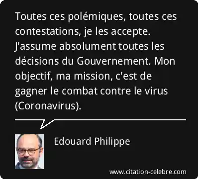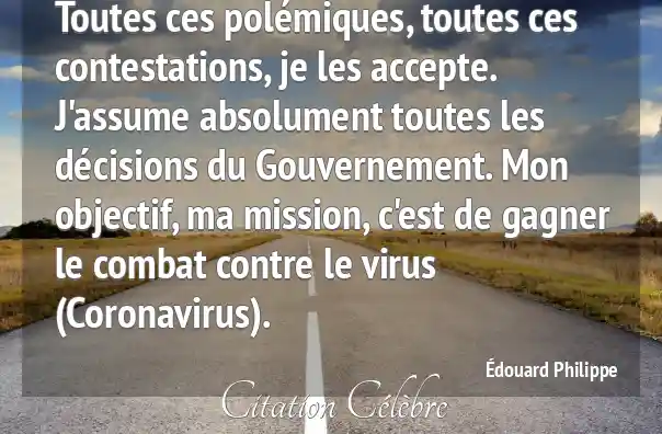 Toutes ces polémiques, toutes ces contestations, je les accepte. J'assume absolument toutes les décisions du Gouvernement. Mon objectif, ma mission, c'est de gagner le combat contre le virus (Coronavirus).