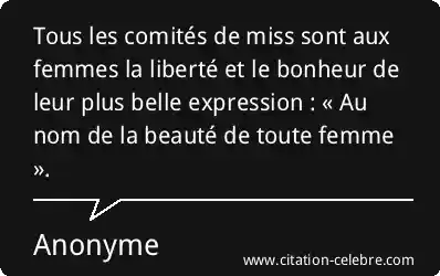 Tous les comités de miss sont aux femmes la liberté et le bonheur de leur plus belle expression : « Au nom de la beauté de toute femme ».