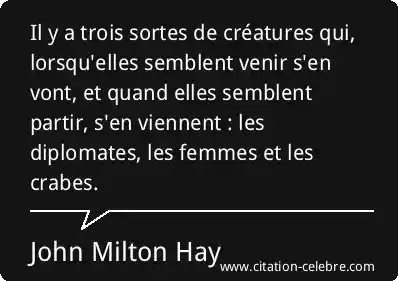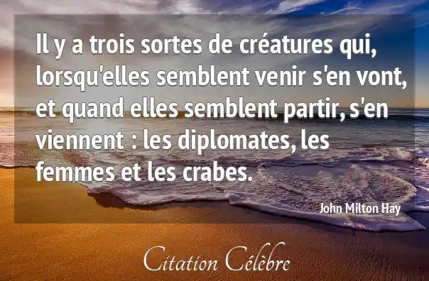 Il y a trois sortes de créatures qui, lorsqu'elles semblent venir s'en vont, et quand elles semblent partir, s'en viennent : les diplomates, les femmes et les crabes.