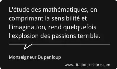 L'étude des mathématiques, en comprimant la sensibilité et l'imagination, rend quelquefois l'explosion des passions terrible.