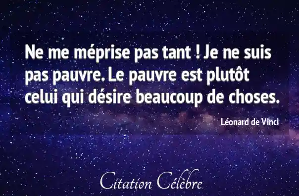 Ne me méprise pas tant ! Je ne suis pas pauvre. Le pauvre est plutôt celui qui désire beaucoup de choses.