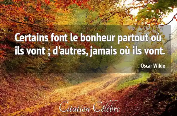 Certains font le bonheur partout où ils vont ; d'autres, jamais où ils vont.