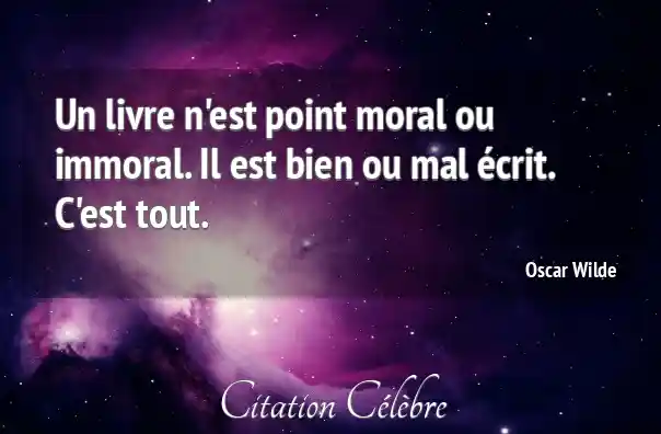 Un livre n'est point moral ou immoral. Il est bien ou mal écrit. C'est tout.