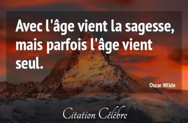 - Style : La force de la citation réside dans sa structure de paradoxe et d'antithèse. Wilde établit une attente commune ("Avec l'âge vient la sagesse") pour la contredire immédiatement et ironiquement ("mais parfois l'âge vient seul"). C'est un exemple parfait de l'esprit wildien : concis, élégant et profondément ironique.