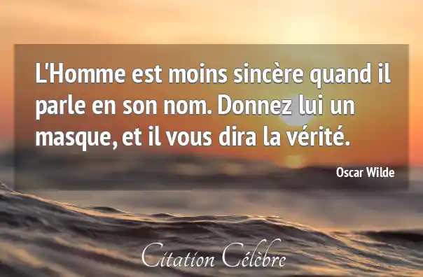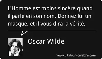 L'Homme est moins sincère quand il parle en son nom. Donnez lui un masque, et il vous dira la vérité.