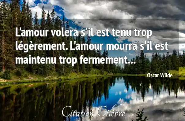 L'amour volera s'il est tenu trop légèrement. L'amour mourra s'il est maintenu trop fermement...