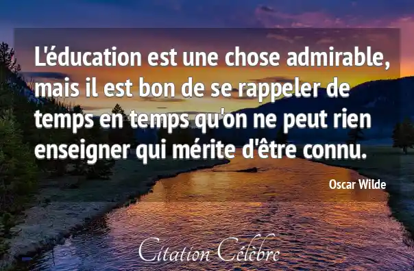 L'éducation est une chose admirable, mais il est bon de se rappeler de temps en temps qu'on ne peut rien enseigner qui mérite d'être connu.