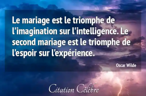 Le mariage est le triomphe de l'imagination sur l'intelligence. Le second mariage est le triomphe de l'espoir sur l'expérience.