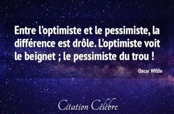 Entre l'optimiste et le pessimiste, la différence est drôle. L'optimiste voit le beignet ; le pessimiste du trou !