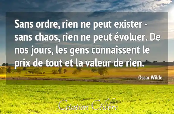 Sans ordre, rien ne peut exister - sans chaos, rien ne peut évoluer. De nos jours, les gens connaissent le prix de tout et la valeur de rien.