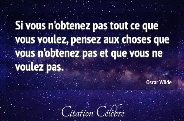 Si vous n'obtenez pas tout ce que vous voulez, pensez aux choses que vous n'obtenez pas et que vous ne voulez pas.
