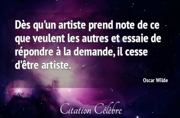Dès qu'un artiste prend note de ce que veulent les autres et essaie de répondre à la demande, il cesse d'être artiste.