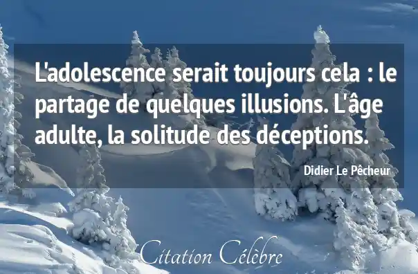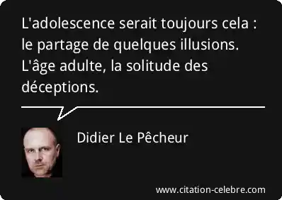 L'adolescence serait toujours cela : le partage de quelques illusions. L'âge adulte, la solitude des déceptions.