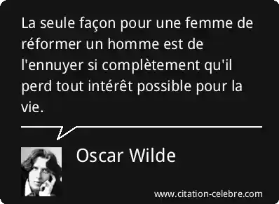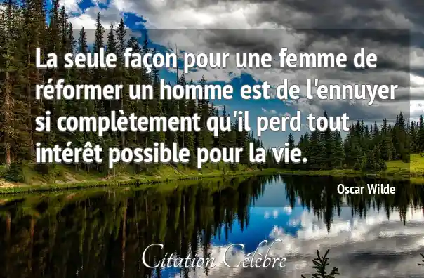 La seule façon pour une femme de réformer un homme est de l'ennuyer si complètement qu'il perd tout intérêt possible pour la vie.