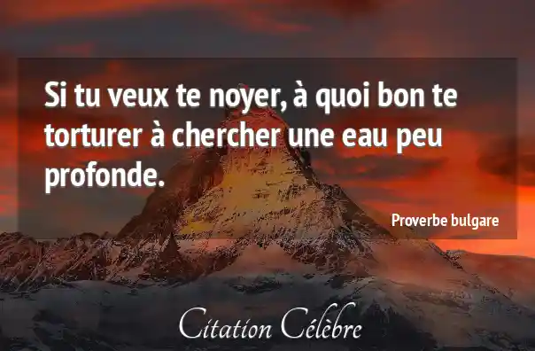 Si tu veux te noyer, à quoi bon te torturer à chercher une eau peu profonde.