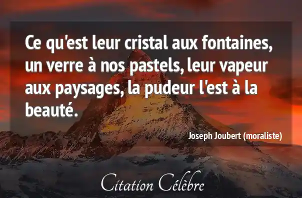 Ce qu'est leur cristal aux fontaines, un verre à nos pastels, leur vapeur aux paysages, la pudeur l'est à la beauté.