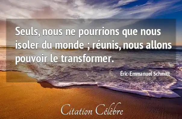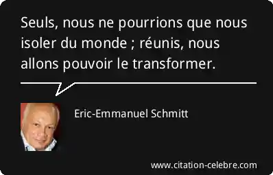 Seuls, nous ne pourrions que nous isoler du monde ; réunis, nous allons pouvoir le transformer.