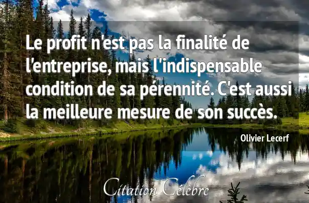 Le profit n'est pas la finalité de l'entreprise, mais l'indispensable condition de sa pérennité. C'est aussi la meilleure mesure de son succès.
