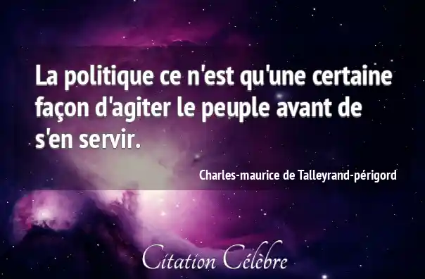 La politique ce n'est qu'une certaine façon d'agiter le peuple avant de s'en servir.