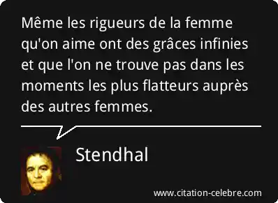 Même les rigueurs de la femme qu'on aime ont des grâces infinies et que l'on ne trouve pas dans les moments les plus flatteurs auprès des autres femmes.