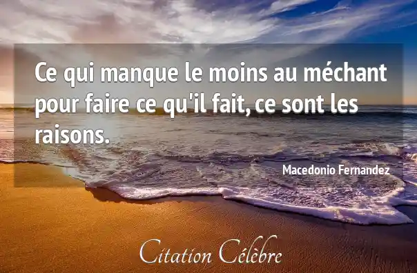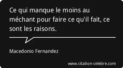 Ce qui manque le moins au méchant pour faire ce qu'il fait, ce sont les raisons.