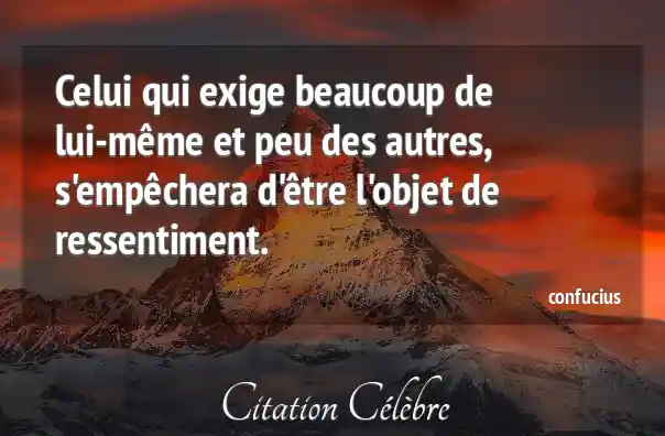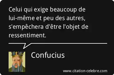 Celui qui exige beaucoup de lui-même et peu des autres, s'empêchera d'être l'objet de ressentiment.