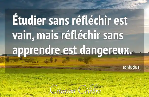 Étudier sans réfléchir est vain, mais réfléchir sans apprendre est dangereux.