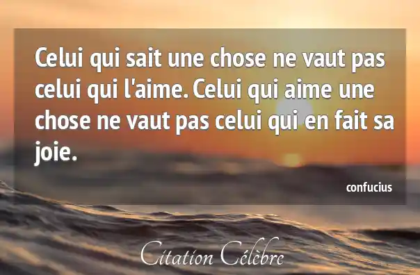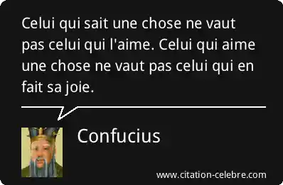 Celui qui sait une chose ne vaut pas celui qui l'aime. Celui qui aime une chose ne vaut pas celui qui en fait sa joie.