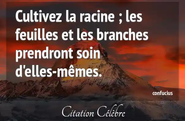Citation Confucius elles : Cultivez la racine ; les feuilles et les branches prendront...