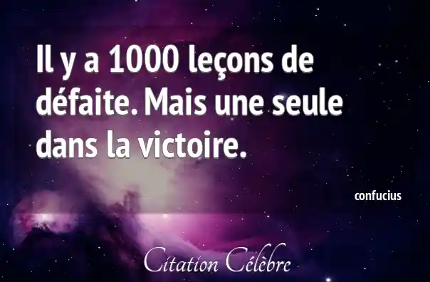 Il y a 1000 leçons de défaite. Mais une seule dans la victoire.