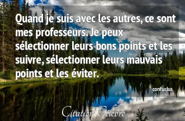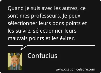Quand je suis avec les autres, ce sont mes professeurs. Je peux sélectionner leurs bons points et les suivre, sélectionner leurs mauvais points et les éviter.