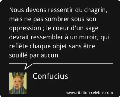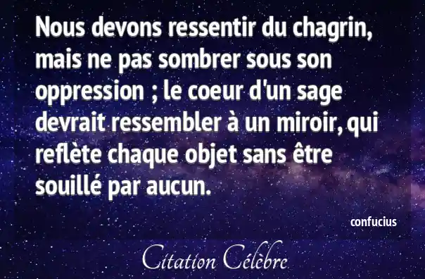 Nous devons ressentir du chagrin, mais ne pas sombrer sous son oppression ; le coeur d'un sage devrait ressembler à un miroir, qui reflète chaque objet sans être souillé par aucun.