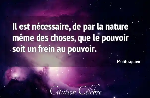 Il est nécessaire, de par la nature même des choses, que le pouvoir soit un frein au pouvoir.