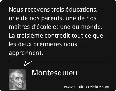 Nous recevons trois éducations, une de nos parents, une de nos maîtres d'école et une du monde. La troisième contredit tout ce que les deux premieres nous apprennent.