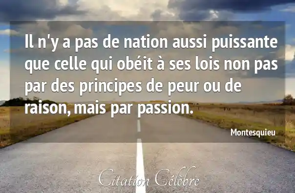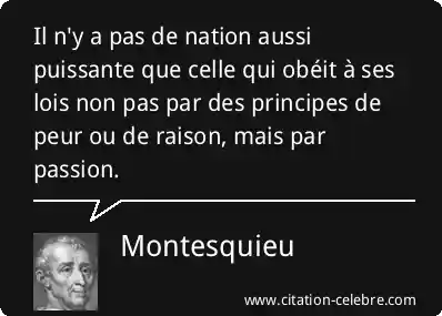 Il n'y a pas de nation aussi puissante que celle qui obéit à ses lois non pas par des principes de peur ou de raison, mais par passion.