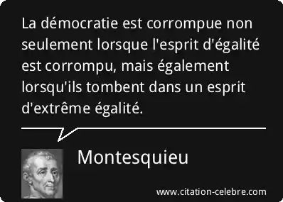La démocratie est corrompue non seulement lorsque l'esprit d'égalité est corrompu, mais également lorsqu'ils tombent dans un esprit d'extrême égalité.
