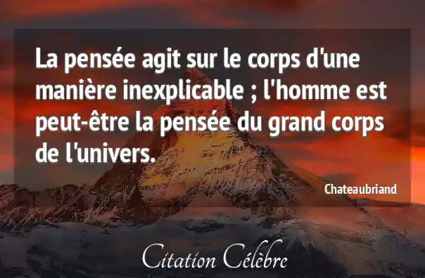 La pensée agit sur le corps d'une manière inexplicable ; l'homme est peut-être la pensée du grand corps de l'univers.