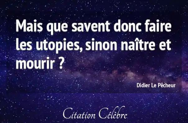 Mais que savent donc faire les utopies, sinon naître et mourir ?