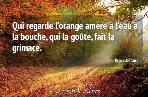 Qui regarde l'orange amère a l'eau à la bouche, qui la goûte, fait la grimace.