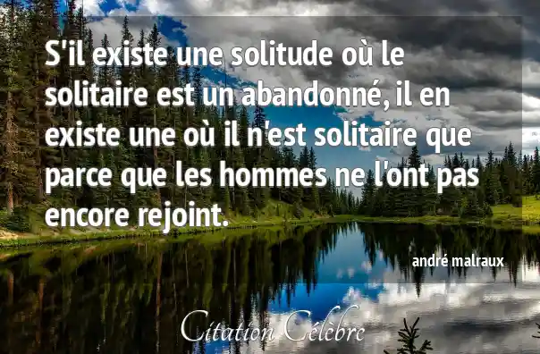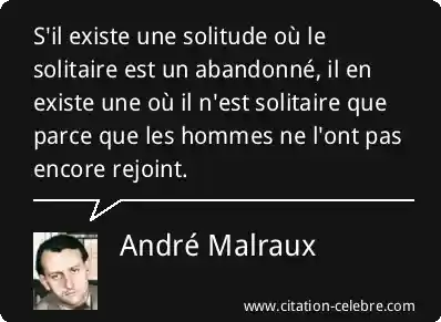 S'il existe une solitude où le solitaire est un abandonné, il en existe une où il n'est solitaire que parce que les hommes ne l'ont pas encore rejoint.