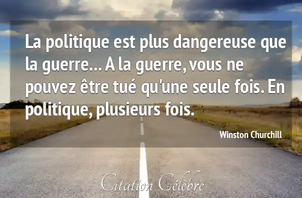 La politique est plus dangereuse que la guerre... A la guerre, vous ne pouvez être tué qu'une seule fois. En politique, plusieurs fois.