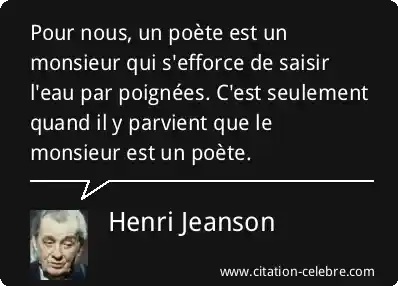 Pour nous, un poète est un monsieur qui s'efforce de saisir l'eau par poignées. C'est seulement quand il y parvient que le monsieur est un poète.