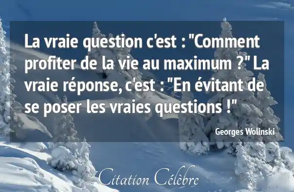 La vraie question c'est : "Comment profiter de la vie au maximum ?" La vraie réponse, c'est : "En évitant de se poser les vraies questions !"