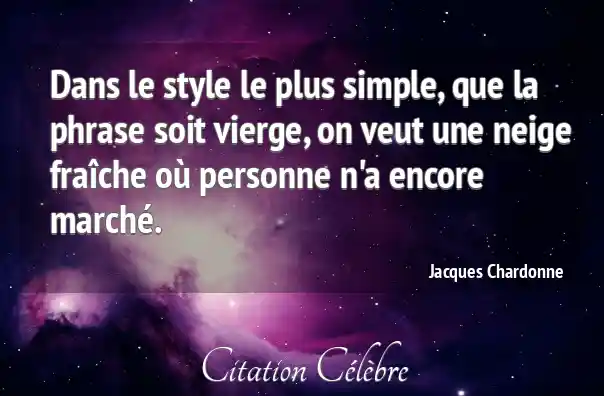 Dans le style le plus simple, que la phrase soit vierge, on veut une neige fraîche où personne n'a encore marché.